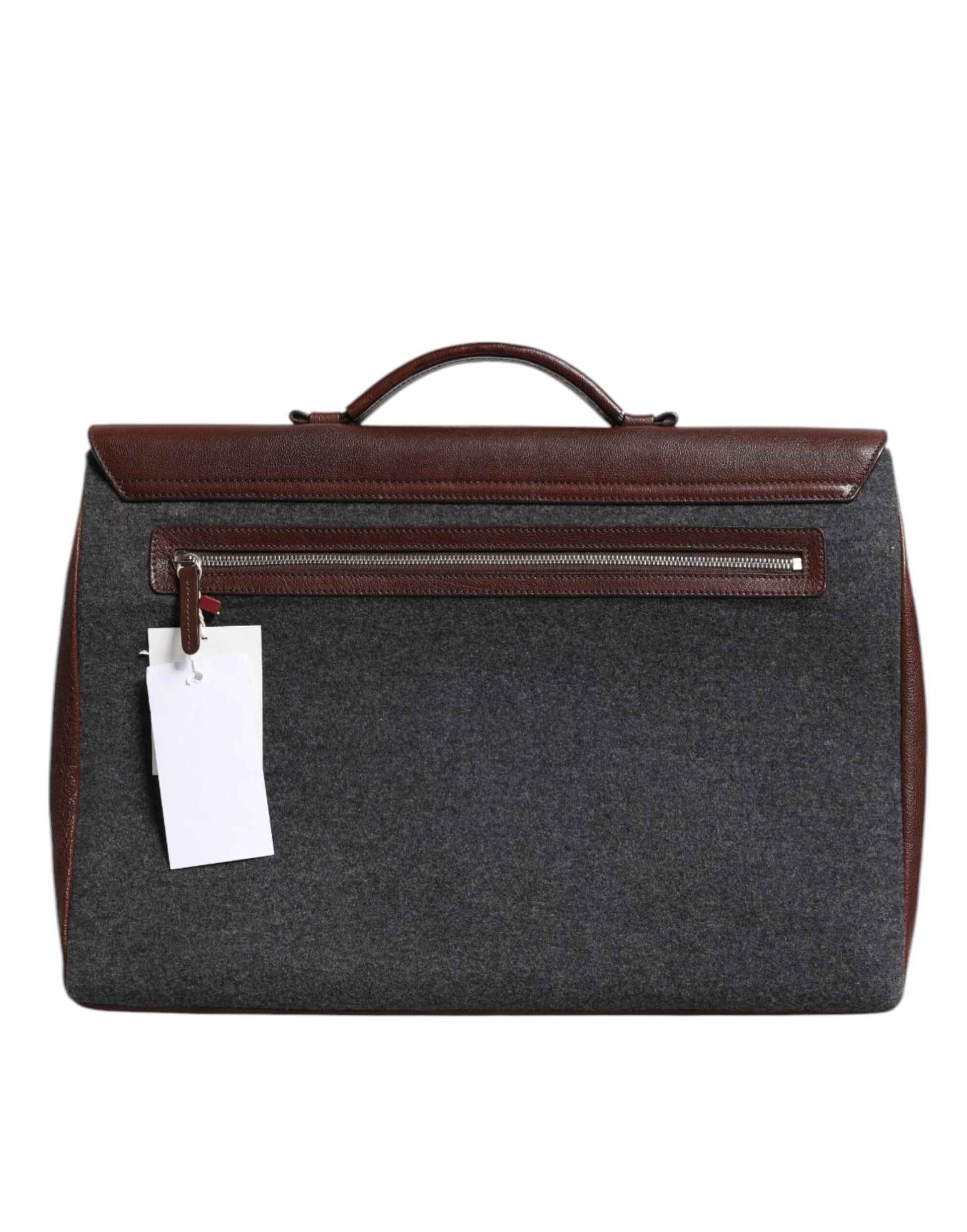 Brunello Cucinelli Brown Gray Leather Cognac Wool Business Tote Bag