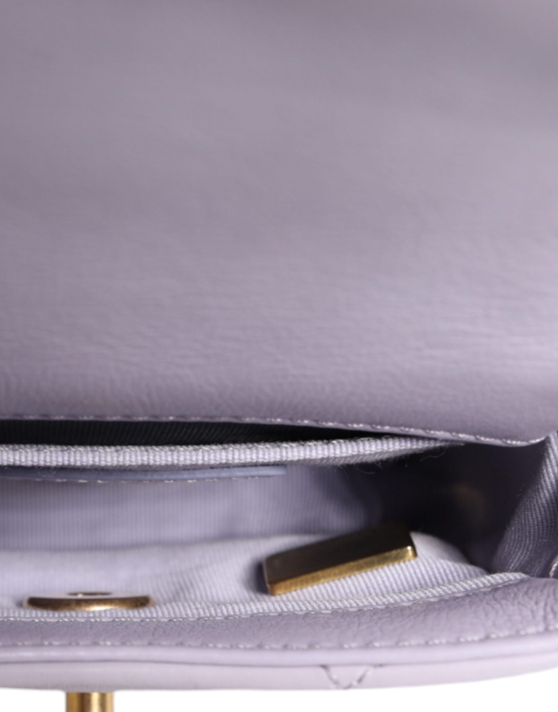 This Chanel Mini Framing Chain Bag gorgeous light purple calfskin leather.