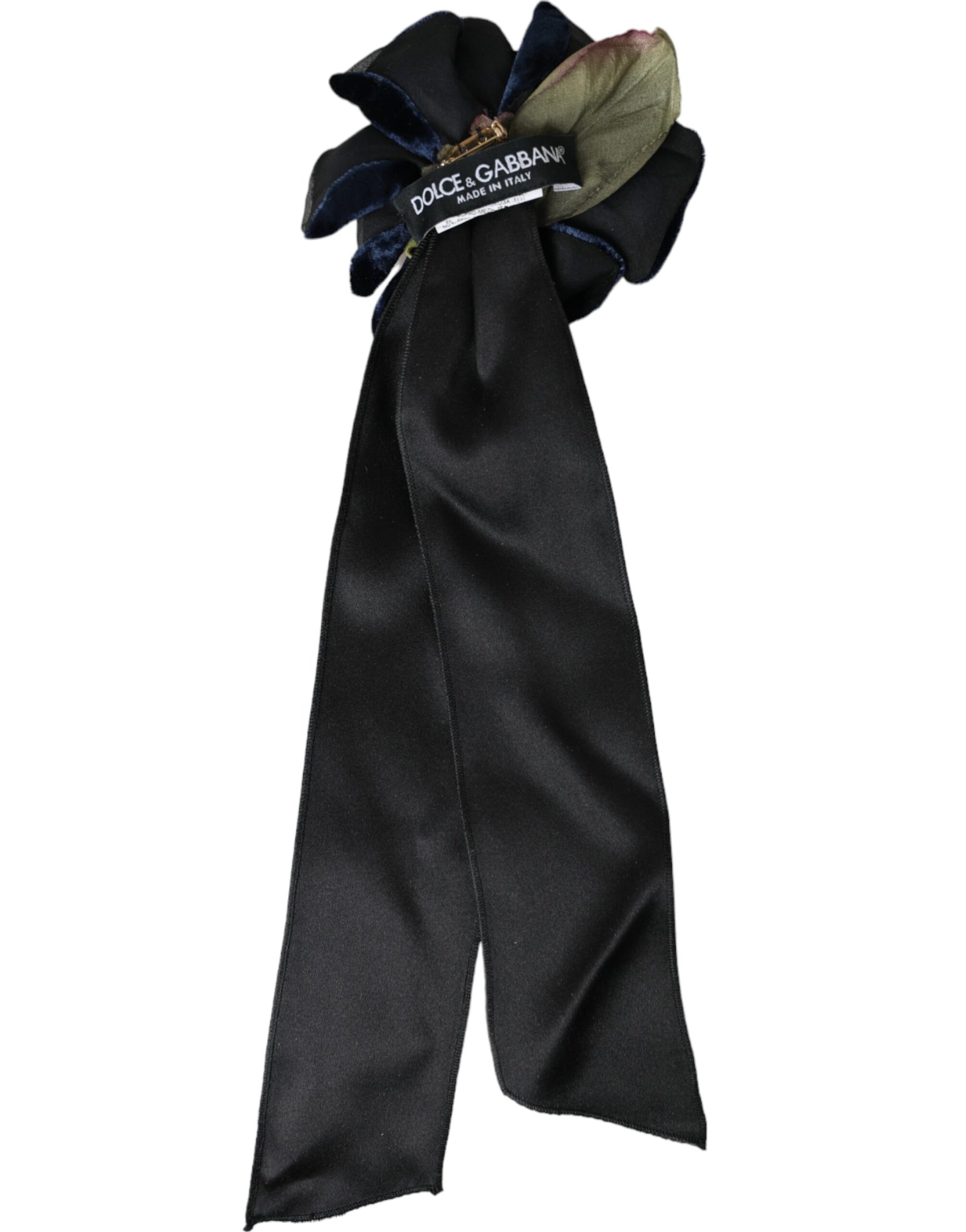 Dolce & Gabbana Black Silk Gold Brass Floral Hair Pin Brooch