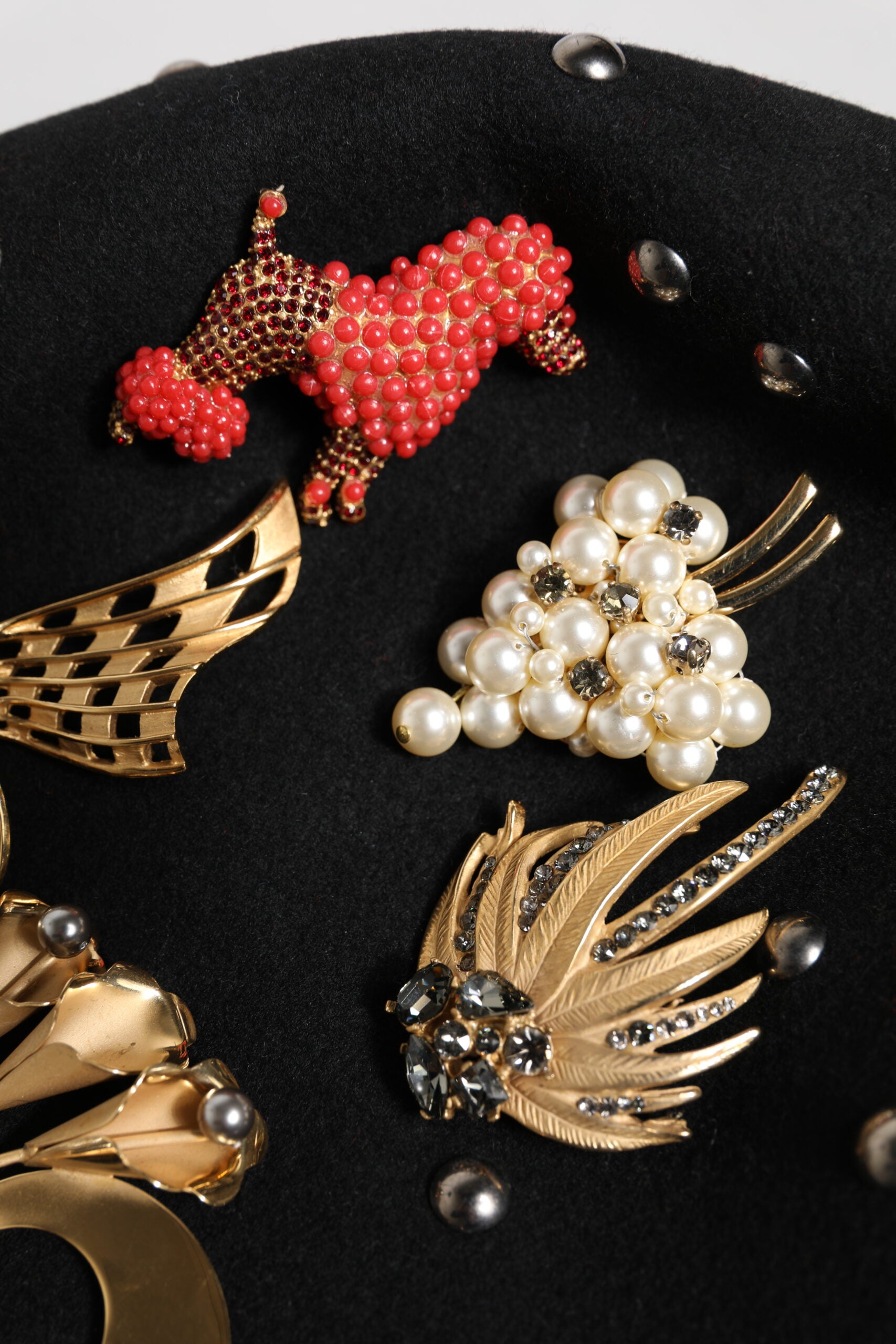Dolce & Gabbana Black Wool Multicolor Embellished Cloche Hat