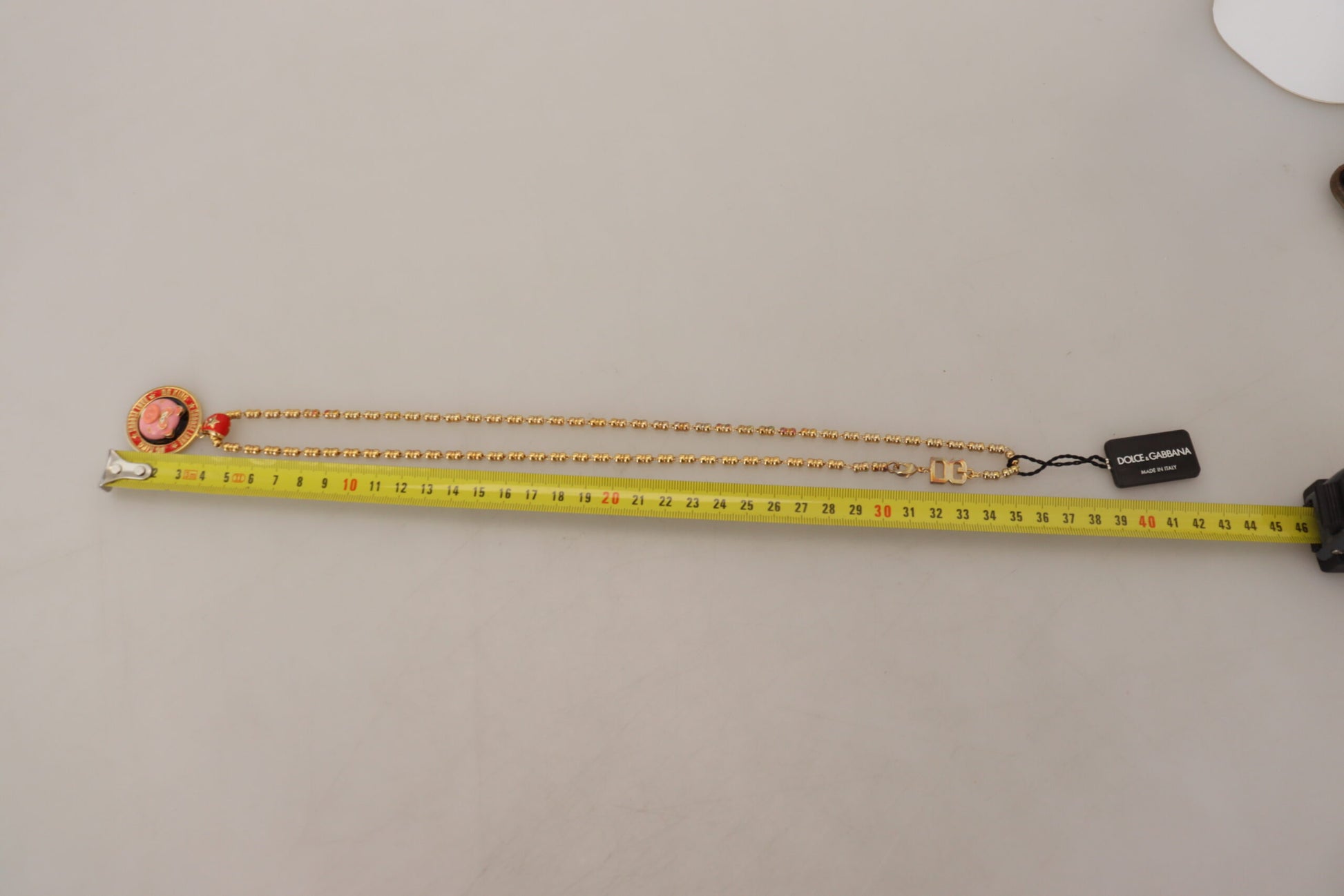Dolce & Gabbana Gold Brass Chain SUPER PIG Pendant Logo Necklace