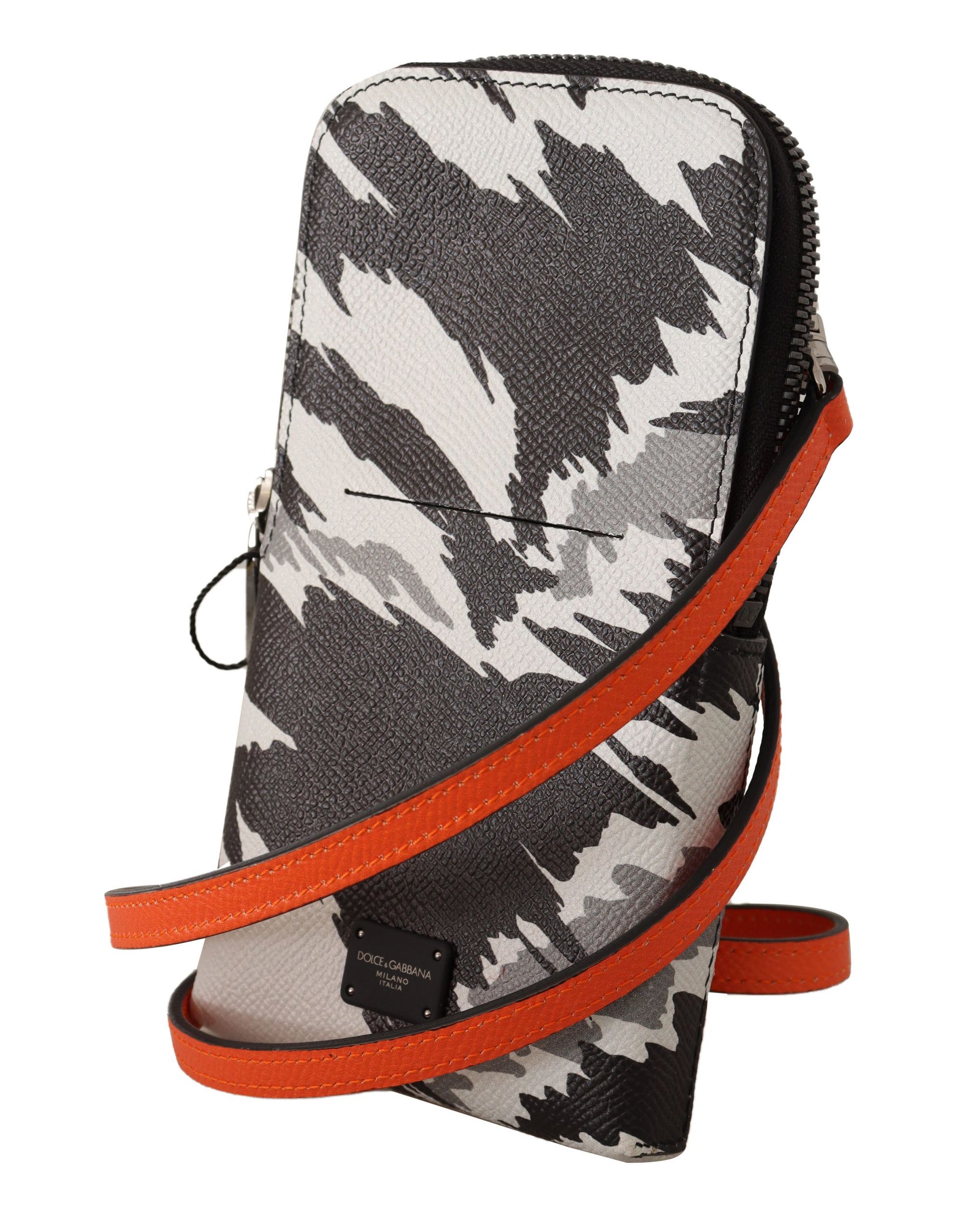 Dolce & Gabbana Gray Leather Cross Body Neck Strap Card Pocket Wallet